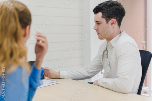 Fototapeta premium Doctors are explaining and analyzing the patient's illness. The doctor put a...