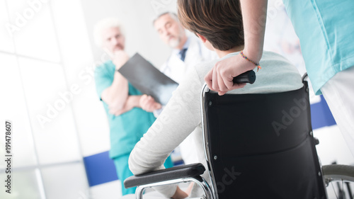 © stokkete, Fototapeta premium Doctors checking a disabled patient's x-ray