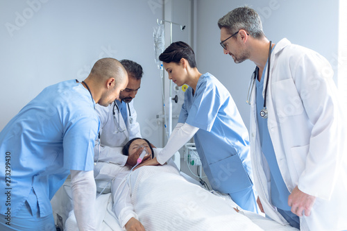© WavebreakMediaMicro, Obraz premium Doctors examining a patient in bed in ward