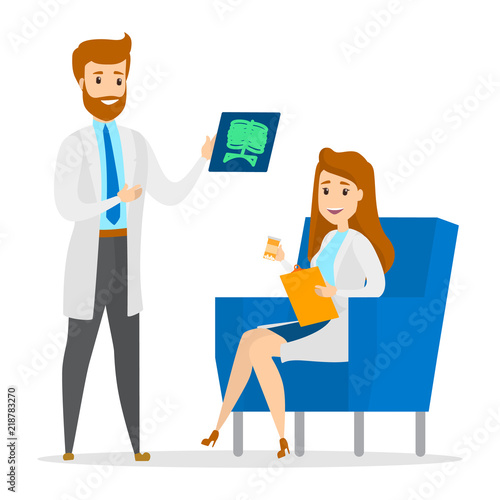 Fototapeta premium Doctors talking to each other. Doctor showing X-ray.