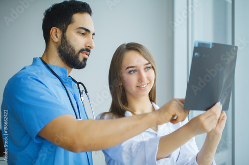© Maksymiv Iurii, Obraz premium Doctors team examining a patient's x-ray