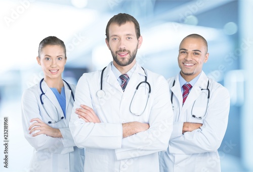 © BillionPhotos.com, Fototapeta premium Doctors team talking expertise in hospital