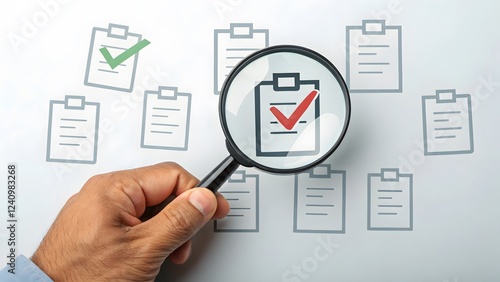 Fototapeta premium Document Review & Verification Hand Holding Magnifying Glass V7