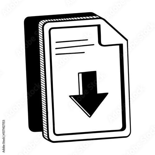 Obraz premium Document with down arrow icon and lines silhouette