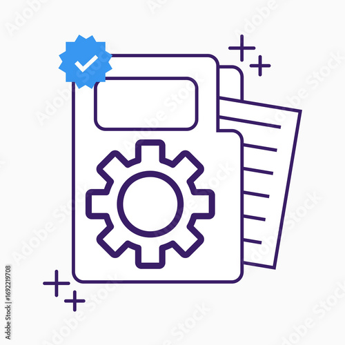 © MstFozila, Obraz premium Document with gear and checkmark icon