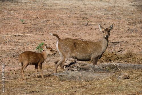 Fototapeta premium Doe and fawn. The Hog deer is another beautiful deer with beautiful big eyes.