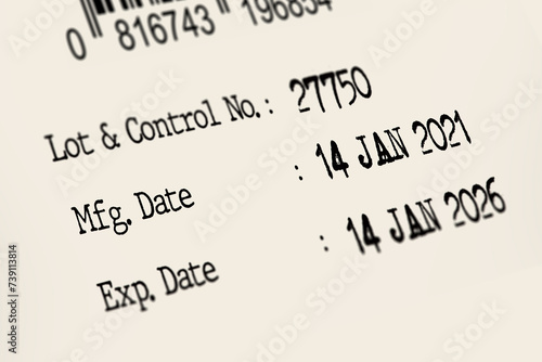 © Peachayatanomsup, Obraz premium DOF of Expiry date and manufacturing date.