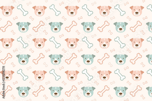 Fototapeta premium Dog and bone pattern background flat style illustration design