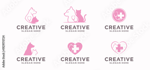 Obraz premium Dog and Cat Combination Logo, Modern Dog and Cat Pet Vector Symbol