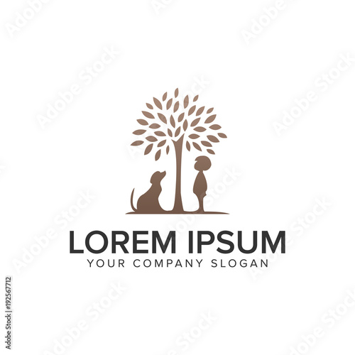 © Saiful, Obraz premium Dog and child tree logo design concept template.