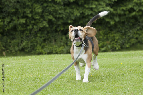 © Nicole Lienemann, Obraz premium dog beagle running outdoor in a park