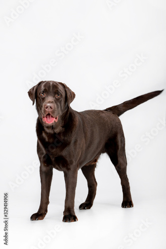 Fototapeta premium Dog breed Chocolate Labrador on a white background