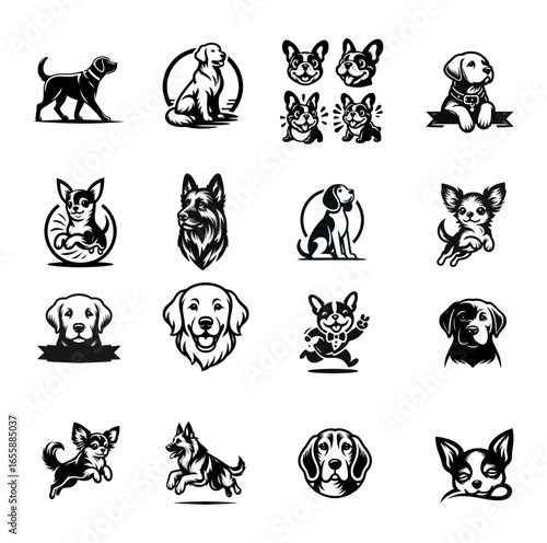 Fototapeta premium Dog Breeds Vector Graphics, Mascot Illustrations Set