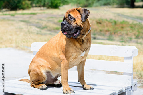 © inna_astakhova, Obraz premium dog bullmastiff sitting on bench