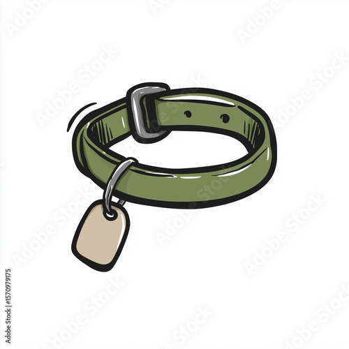 Obraz premium Dog collar with tag illustration featuring a simple hand-drawn style on a...