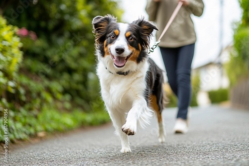 © K teo, Fototapeta premium Dog Enthusiastically Pulling Owner During Walk