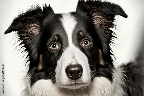 Fototapeta premium Dog face, Border collie, white background. AI digital illustration