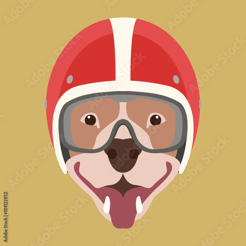 © wectorcolor, Obraz premium dog face in motorcycle helmet vector illustration flat