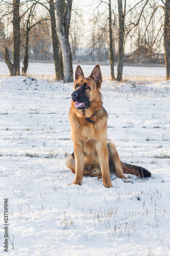 © Elenglush, Naklejka premium Dog german shepherd in a park in a winter day