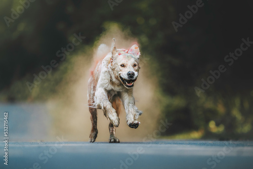 © Lait_ph, Obraz premium dog golden retriever in the autumn location in the colors of Holly