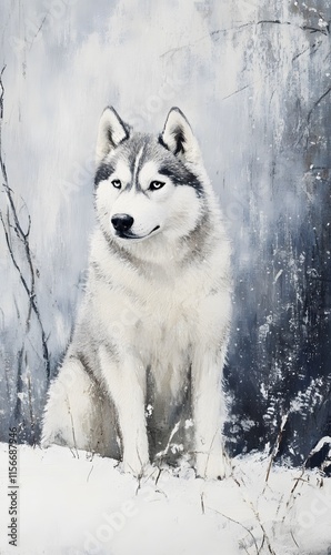 © BLUEE, Naklejka premium Dog handsome on the snow,generation AI