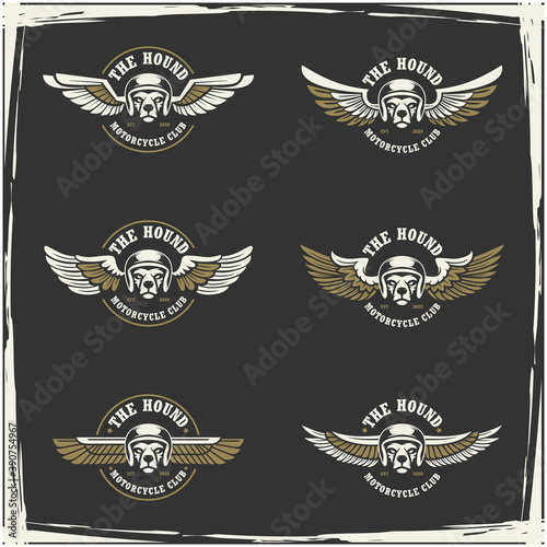 Obraz premium Dog head auto repair and custom Garage logo. Design element for company logo,...