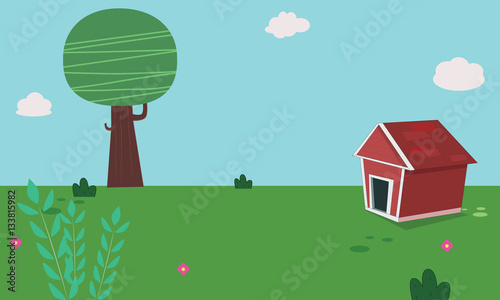 © vvadyab, Naklejka premium Dog home in garden with sky