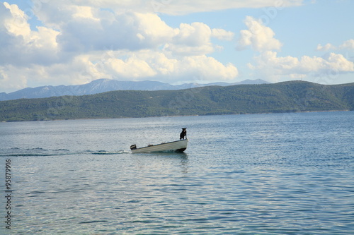 © vladuzn, Obraz premium Dog in boat