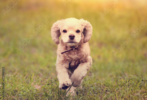 © Happy monkey, Fototapeta premium dog is running at sunset