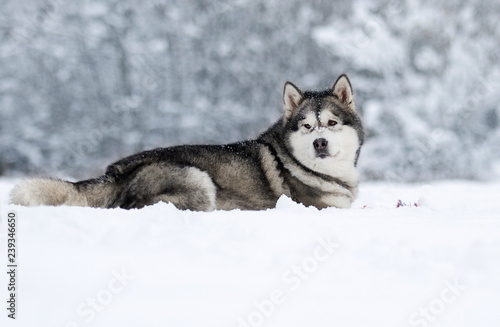 © Happy monkey, Fototapeta premium dog on a winter walk in the snow