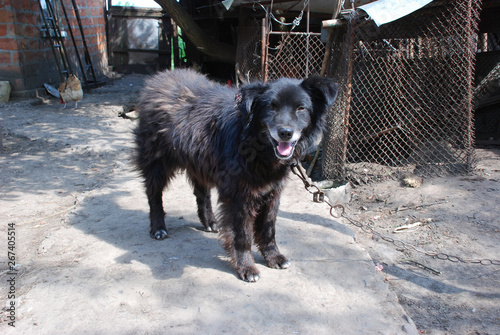 © Yulia Sanatina, Naklejka premium dog on the rusty chain