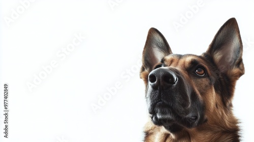 © chutikan, Obraz premium Dog outdoors exploring, ears perked up, white background, isolate