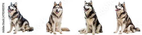 Obraz premium Dog PNG set - sitting photo of happy Alaskan Malamute isolated transparent background