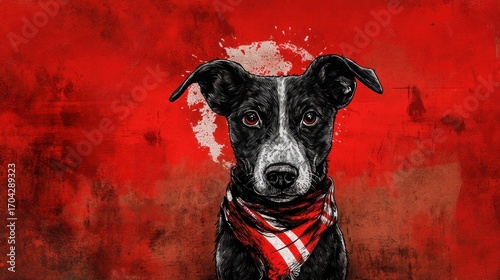 © afridwi, Obraz premium Dog portrait with red bandana on red backdrop