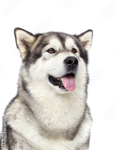 © Happy monkey, Obraz premium dog portrait with tongue isolated breed alaskan malamute