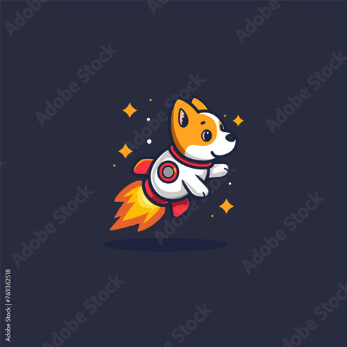 Obraz premium Dog riding rocket logo design vector illustration