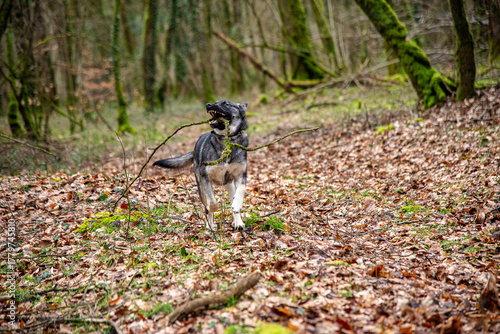 © Marine Delanoë, Naklejka premium dog running in the woods