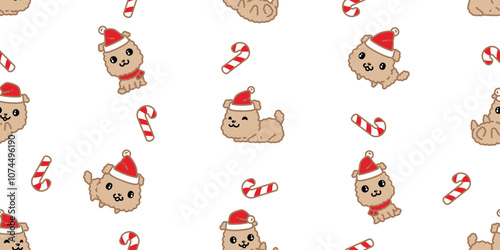 Obraz premium dog seamless pattern Christmas Santa Claus candy cane fluffy puppy vector...