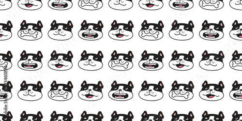 Naklejka premium dog seamless pattern french bulldog smiling head face vector pet paw...
