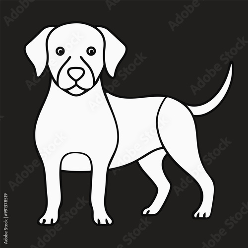 © sarafat hossain, Fototapeta premium : Dog silhouette black and white victor illustration fil