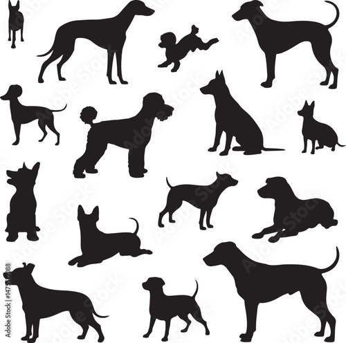 Fototapeta premium “Dog Silhouette SVG Bundle | Pet Clipart, Paw Prints & Dog Breed Vectors for Shirts & Crafts”“Dog Lover Vector Pack | Cute & Classic Dog SVGs for T-Shirts, Stickers, and DIY Projects”