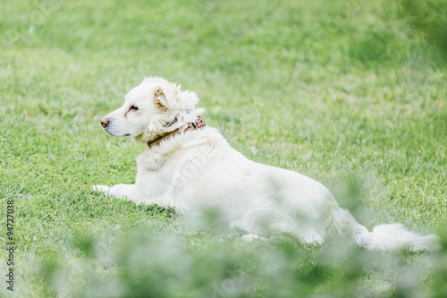 © itrefer, Obraz premium Dog Sitting on the Grass