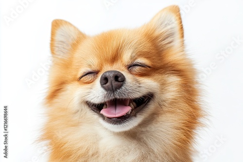 © Alexander LW, Obraz premium dog. small smiling, native, smile. on a white background close-up. playful mood