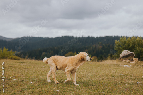 © Omar, Fototapeta premium dog walking in the mountains