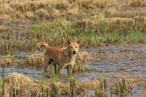 Naklejka premium Dog walking on the fields.