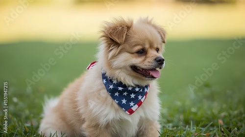 © DoelBast, Fototapeta premium Dog Wearing American Bandana