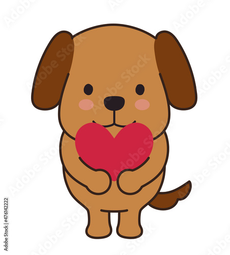 Fototapeta premium Dog with a love heart. Vector illustration isolated on a white background.
