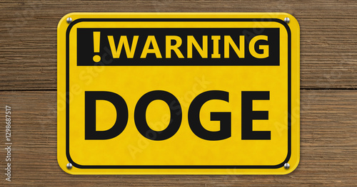 © Karen Roach, Fototapeta premium DOGE Government Spending warning sign on weathered wood
