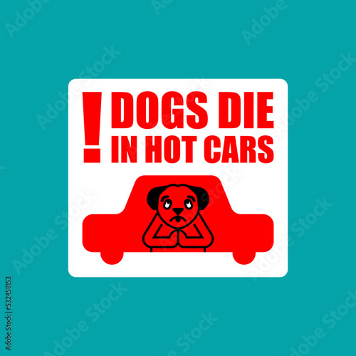Obraz premium Dogs die in hot car. Dangers Car sign
