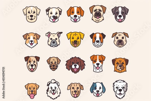 © artemstepanov, Obraz premium Dogs Doodle Set, Pet Animal Symbols, Hand Drawn Puppy Icons Silhouettes, Sketched Dog Character